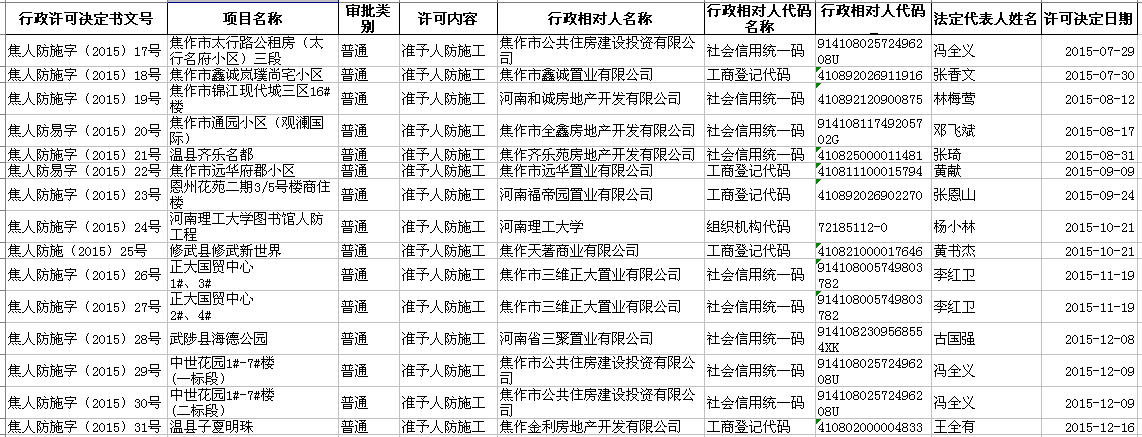 2015年行政许可公示